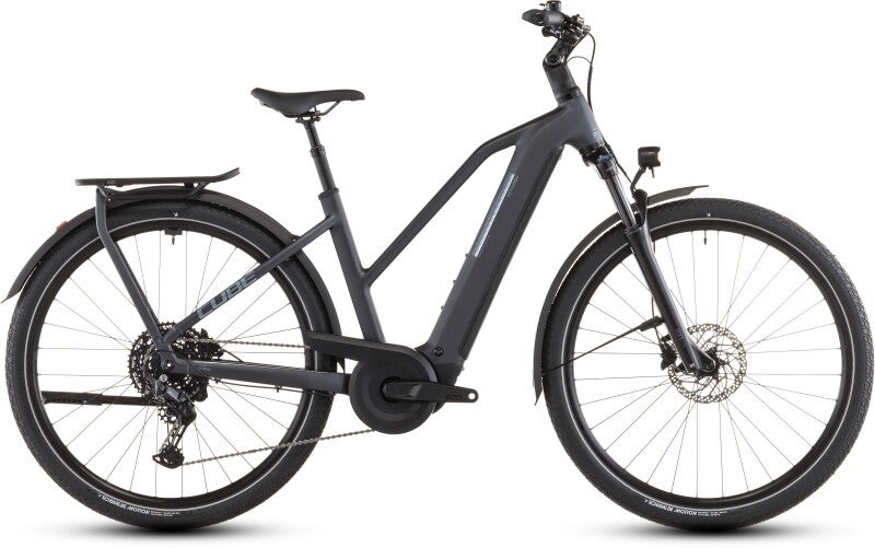 Wer mit dem CUBE Kathmandu Hybrid ONE unterwegs ist, kann seiner Abenteuerlust freien Lauf lassen. Denn dieses Bike ist mit einem 800 Wh PowerTube Akku ausgerüstet, der den leistungsstarken Bosch CX Antrieb mit bis zu 100 Nm Drehmoment zuverlässig vorwärtstreibt. Außerdem mit einer einfach zu bedienenden, breit gefächerten Cues 10-fach Schaltung von Shimano, welche diese Power wohldosiert auf die Straße bringt. So wird jede Route zum Spaziergang! In Sachen Komfort leisten die Suntour Luftfedergabel, eine gefederte Sattelstütze und der verstellbare Vorbau besonders an langen Tagen im Sattel wertvolle Dienste. Sichere, zuverlässige Bremskraft bei jedem Wetter ist das Spezialgebiet der kraftvoll zupackenden hydraulischen Shimano Scheibenbremsen. Ebenso mit an Bord ist ein Zubehör-Komplettset, bestehend aus einer Lichtanlage, Schutzblechen und natürlich unserem integrierten Gepäckträger IC 3.0. Soll heißen: Dieses E-Bike ist allzeit bereit für sämtliche Entdeckertouren!